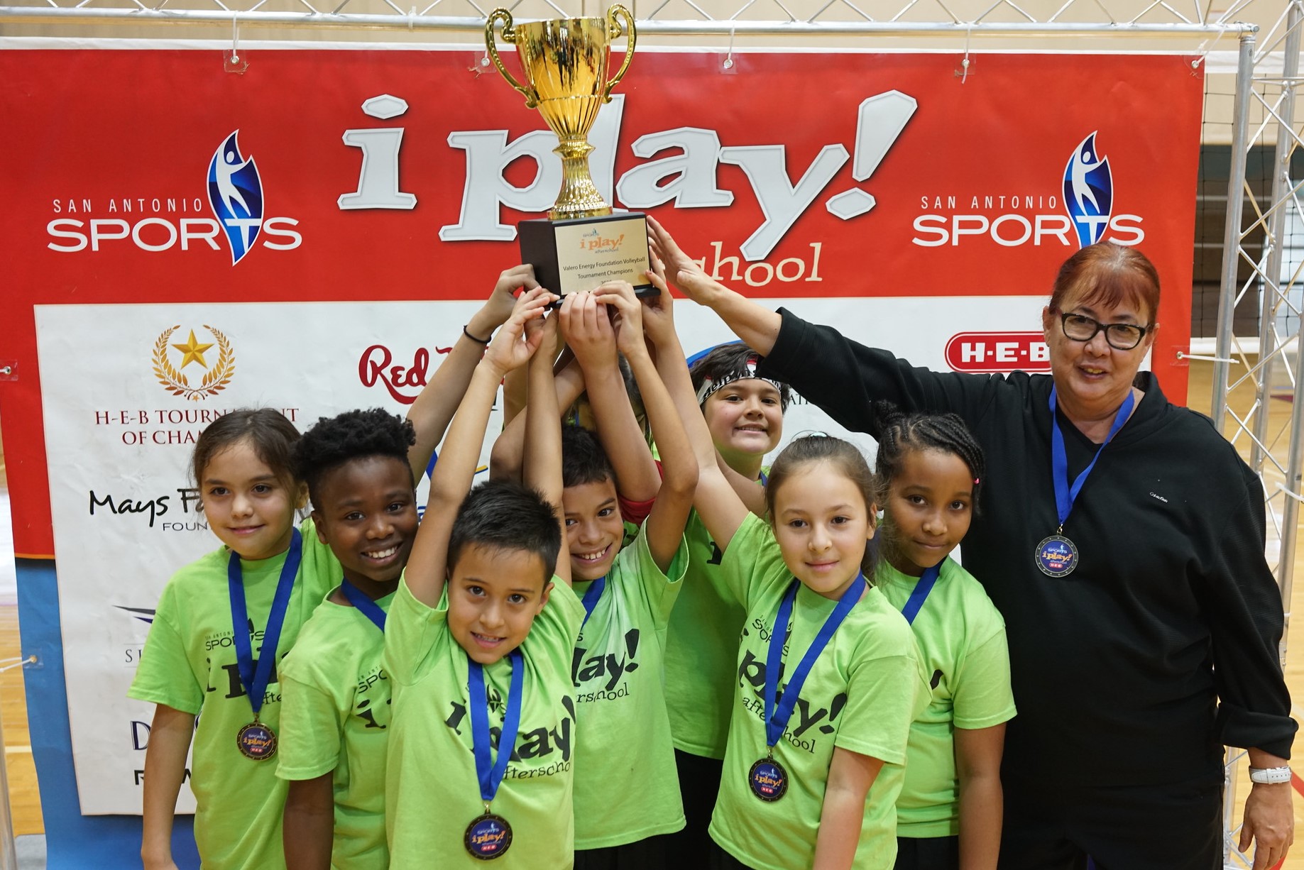 Congratulations to Hirsch Elementary, San Antonio Sports i play! afterschool Valero Energy Foundation Volleyball Tournament champions! Briscoe Elementary was second and Margil came in third. Kudos to all 58 schools for their sportsmanship and effort. It was a great day of play! Click here to see photos from the tournament