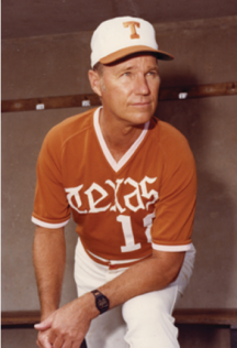 In 1968, he took over the helm of The University of Texas baseball program. During his 28-year tenure there, he led the Longhorns to two national championships in 1975 and 1983, and 22 Southwest Conference titles. In addition, his Longhorns won the SWC postseason tournament 11 times, participated in the NCAA Playoffs 26 times and competed in the college World Series 17 times.