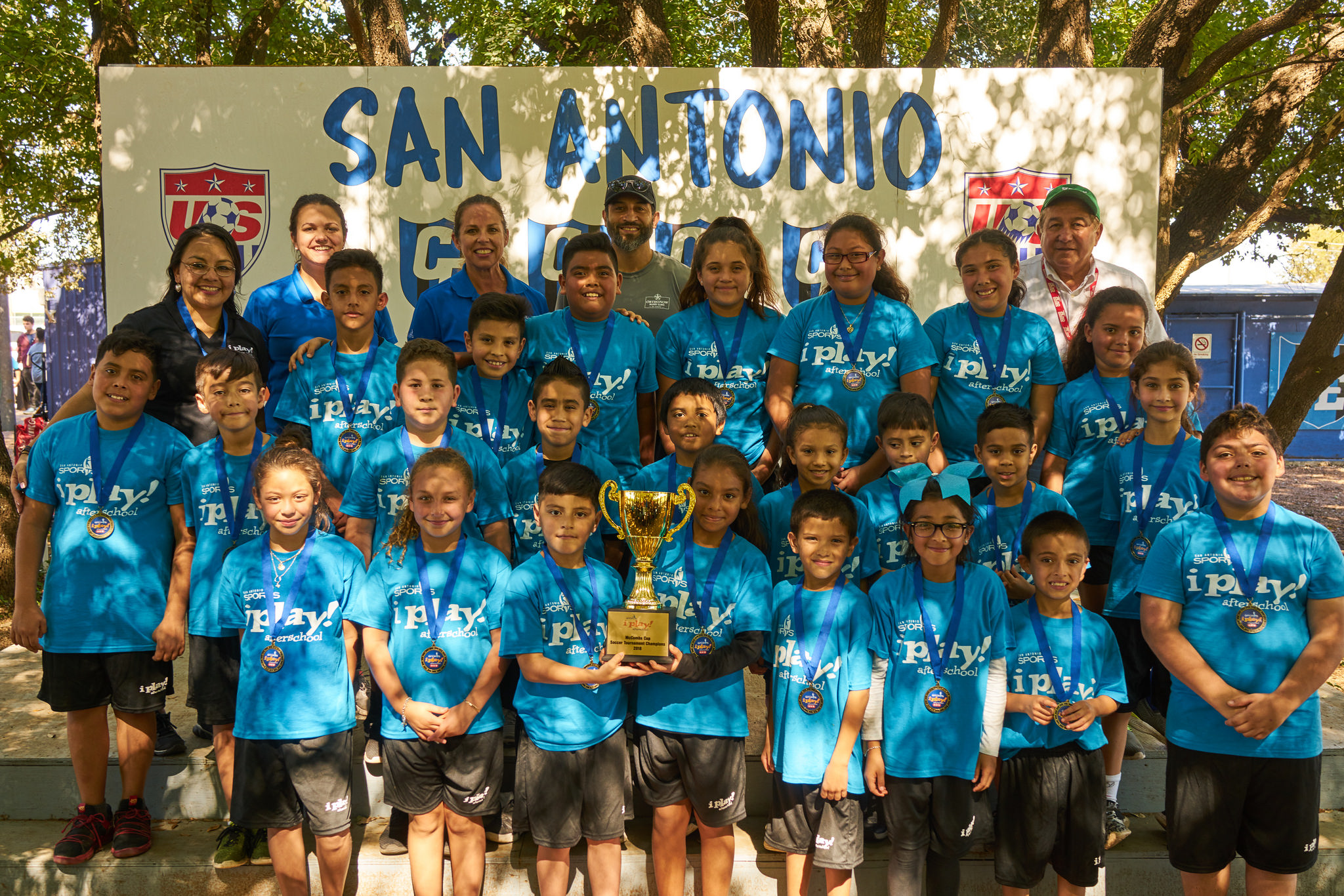 San Antonio Sports i play! afterschool McCombs Automotive Soccer Tournament took place at Classics Elite Soccer Complex on Saturday, October 27.  More than 1,000 kids from 48 different elementary schools in Harlandale and San Anotnio school districts teamed up to contend for the McCombs Cup. The tournament is one of five put on by San Antonio Sports as part of its i play!afterschool initiative created to encourage development in five sports for third through fifth graders.Each five-week sport unit culminates in a fun tournament where kids can demonstrate their new skills and parents, family and friends can cheer them on.