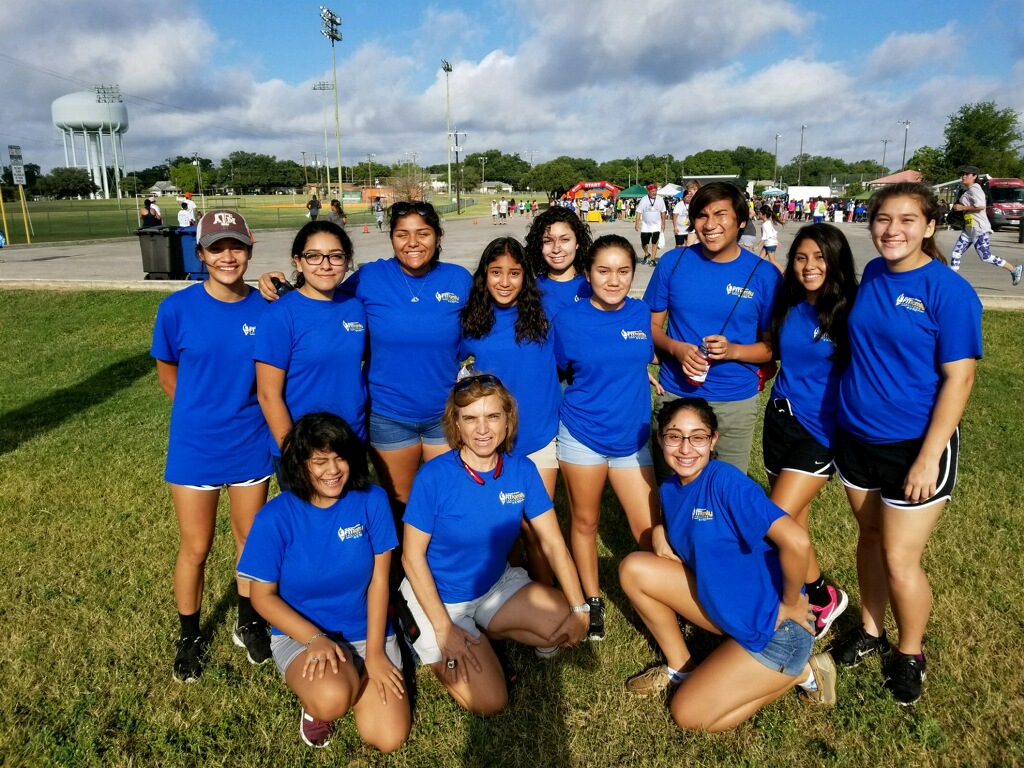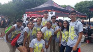 If you went to Big League Weekend, or participated in the San Antonio Sports Corporate Cup or ran in the Fit Family Challenge Jump into Fitness 5K finale, you probably encountered SWAT (Students Working Around Town) students from Brooks Academy of Science and Engineering. This service club is organized by founder and sponsor Nancy Bailey, who also teaches algebra and coaches power lifting at the school. SWAT’s first experience was passing out baseball cards at Big League Weekend. The kids were thrilled to help and then stay for a game. For many, it was their first time to see a professional baseball game. While the group has enjoyed helping at all the events, Corporate Cup might be the favorite. “To know they were part of such a big event, and getting to put their skills to use was a big deal. And those who helped with scoring liked being in charge of adults,” says Nancy. Another favorite was staffing the Kids Zone at Fit Family Challenge Finale, although those at the water station got a kick out of complying with runners’ requests to throw water in their face.